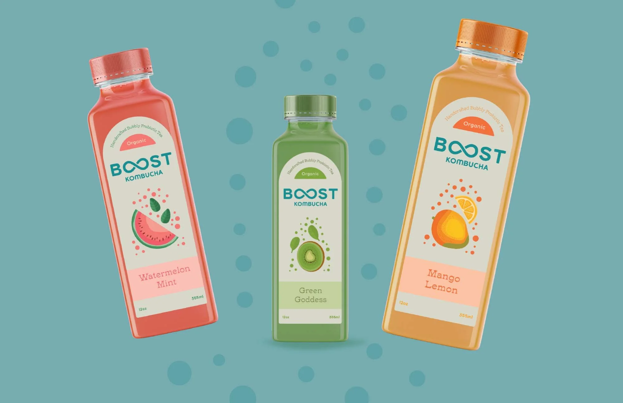Boost is a start-up brand inspired by their love for having a healthy lifestyle. Kombucha is well-known for its health benefits, however, Boost wants to promote more than just a probiotic drink. Boost is fun, playful, and of course, delicious!